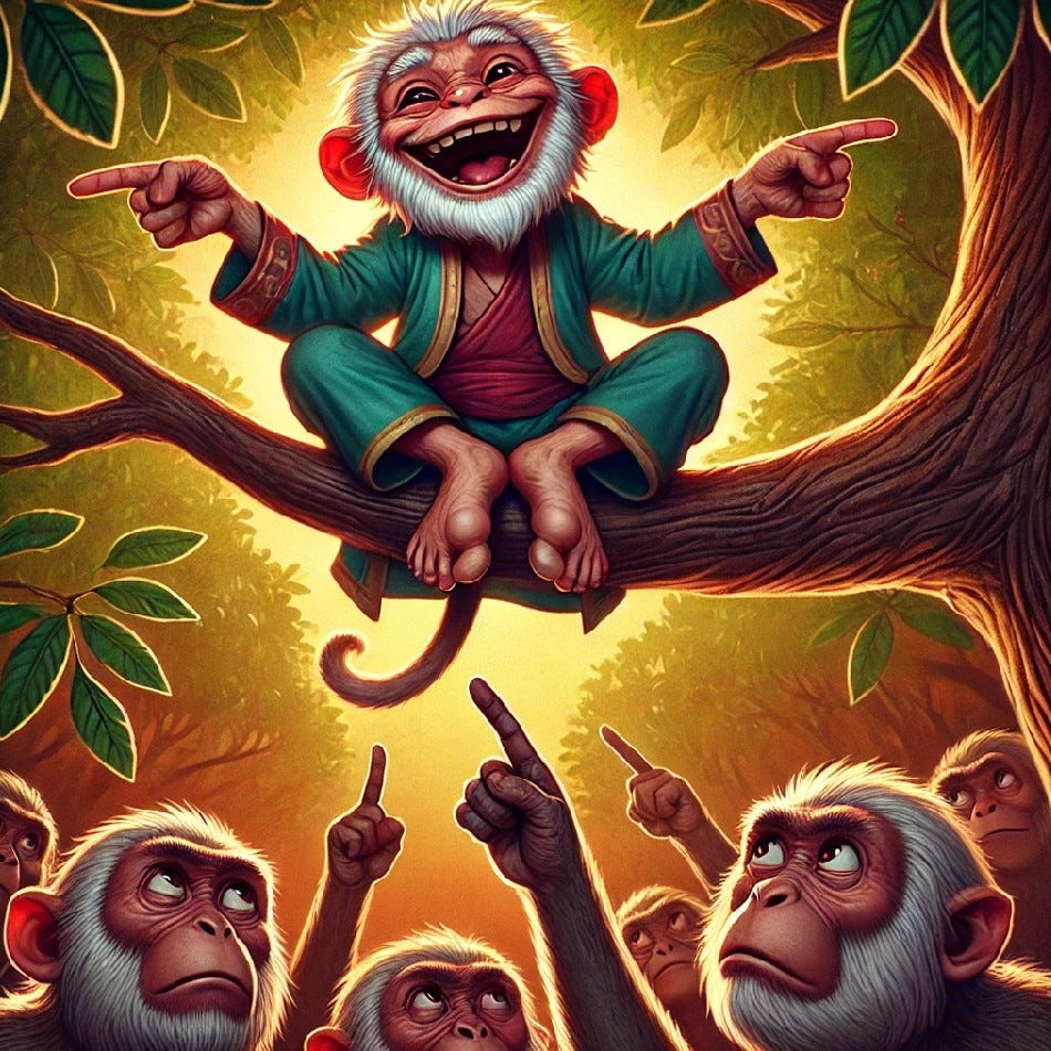 Le vieux singe en haut de l’arbre a tout vu, tout compris.