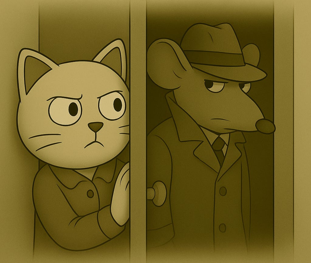 - 🧦 L'inspecteur Labavure : le rat en imper, profileur ou faux allié, toujours trop proche, jamais neutre. C'est l'espion de service, le cadre dynamique, le cul posé sur sa chaise toujours prêt à pondre un rapport mal interprété.