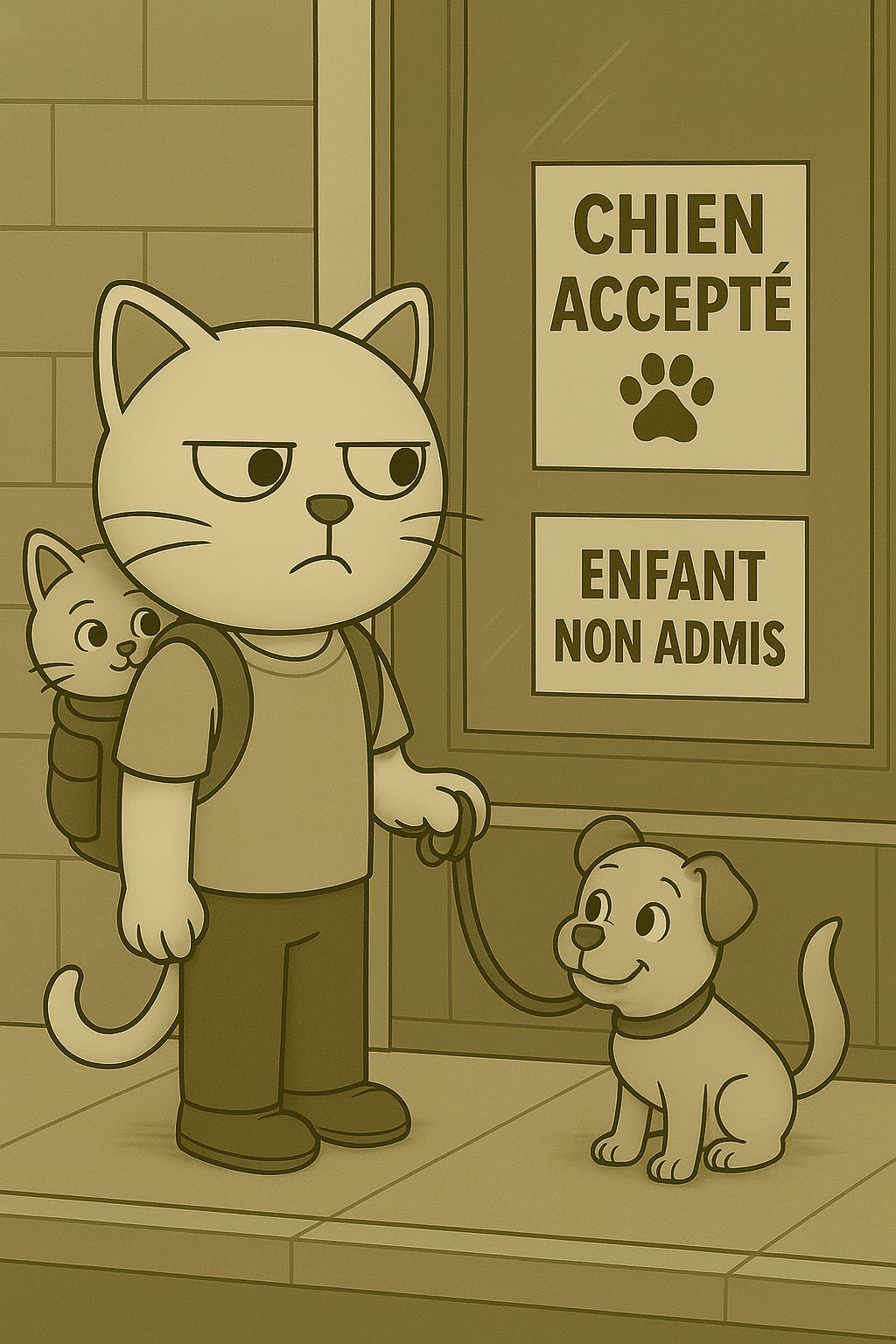 - 🐶 Le chien : veille sans parler. Fidèle sans illusion. Le gardien du foyer. Parfois en laisse, parfois libre selon les besoins de la satire.