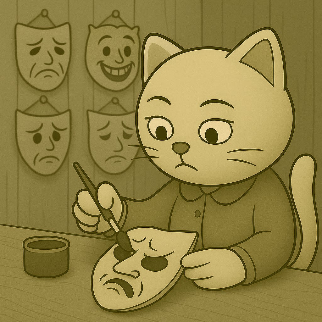 - 🐈 Anne-Charlotte : le masque bourgeois. Douce en surface, acide dessous. Elle représente plus généralement les médias et les intellectuels de salons.