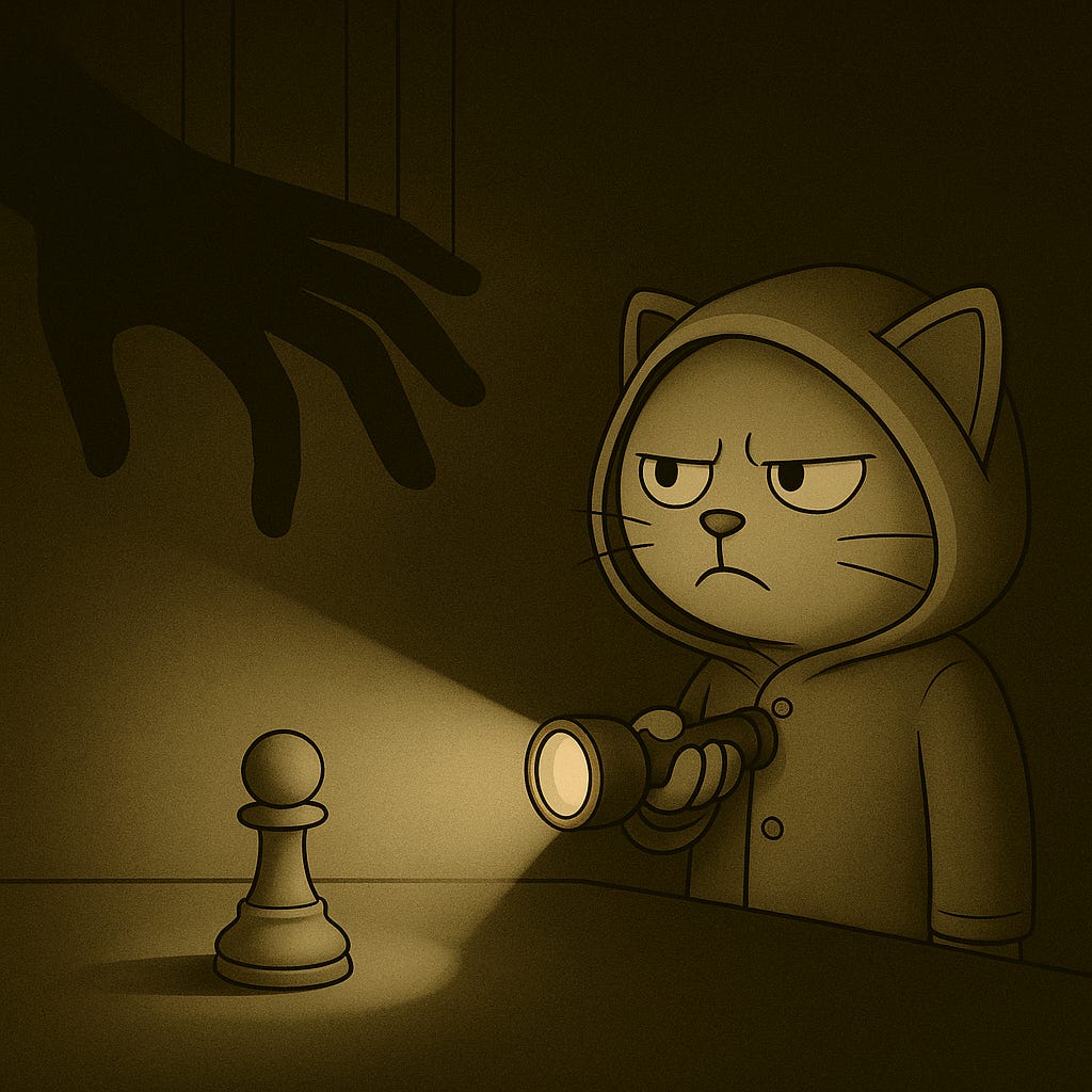 - ✊ La Main : l’organisation invisible, la mécanique d’État, l’ordre qui ne signe jamais ses décrets. Celle qui écrase les dissidents, qui exclut les marginaux qu'elle a marginalisé elle-même par une mécanique bien huilée.
